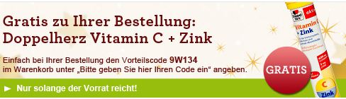 Ab heute (06.12.) gibt es einen neuen Gustcheincode. Gebt bei Eurer Bestellung „9W134“ ein und bekommt kostenlos eine Röhre Doppelherz Vitamin C + Zink Brausetabletten zu Eurer Bestellung dazu! Super zum Stärken der Abwehrkräfte bei Matsch-Wetter! Gültigkeitszeitraum leider unbekannt, einfach mal ausprobieren.
